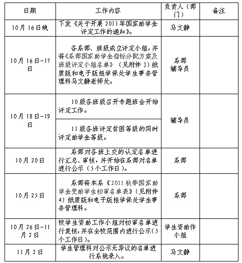 10月16日晚 下发《关于开展2011年国家助学金评定工作的通知》。 马文静